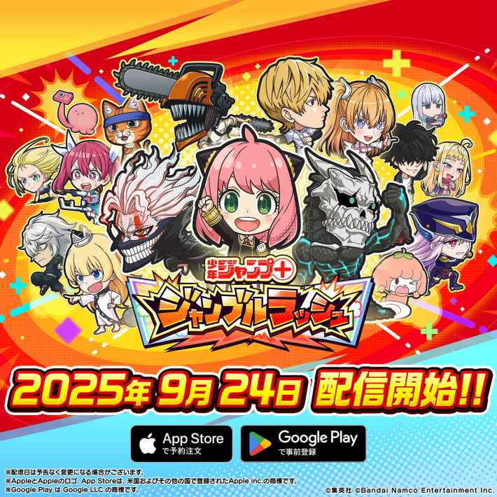 2025年9月12日(金)、株式会社バンダイナムコエンターテインメントは『ジャンプ+ジャンブルラッシュ』のサービス開始日が2025年9月24日(水)になることを発表した。また、TGS2025特別配信番組も放送予定となっている。