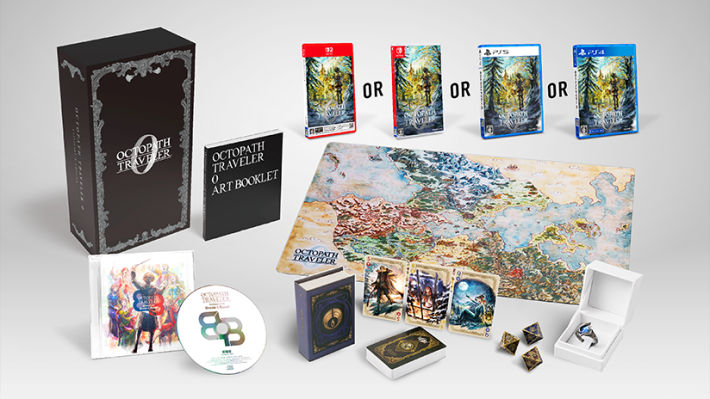オクトパストラベラー0のコレクターズエディションは、パッケージ版のみ(※)の発売で特典として「デジタルデラックス アップグレード」コードや聖火神の指輪・トラベラーズトランプなどの限定グッズ、アートブックレットなどがついてくる。