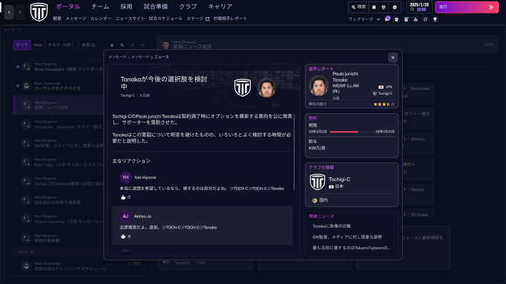 そんな今作は、これまでのシリーズからゲームエンジンをUnityに変更し、UIも大幅に変えるなど思い切ったフォルムチェンジをかけた作品だったが、結果としてFM24など以前の作品との違いが目立ち、特にこれまでの快適なUIを知るファンから改善の声が多く上がっている。