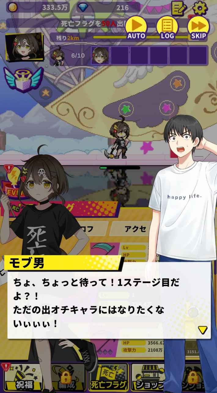 『この世界には死亡フラグが多すぎる!』は、YouTube登録者数200万人を超える人気ショートアニメ「全力回避フラグちゃん!」を原作とした放置ゲーム。