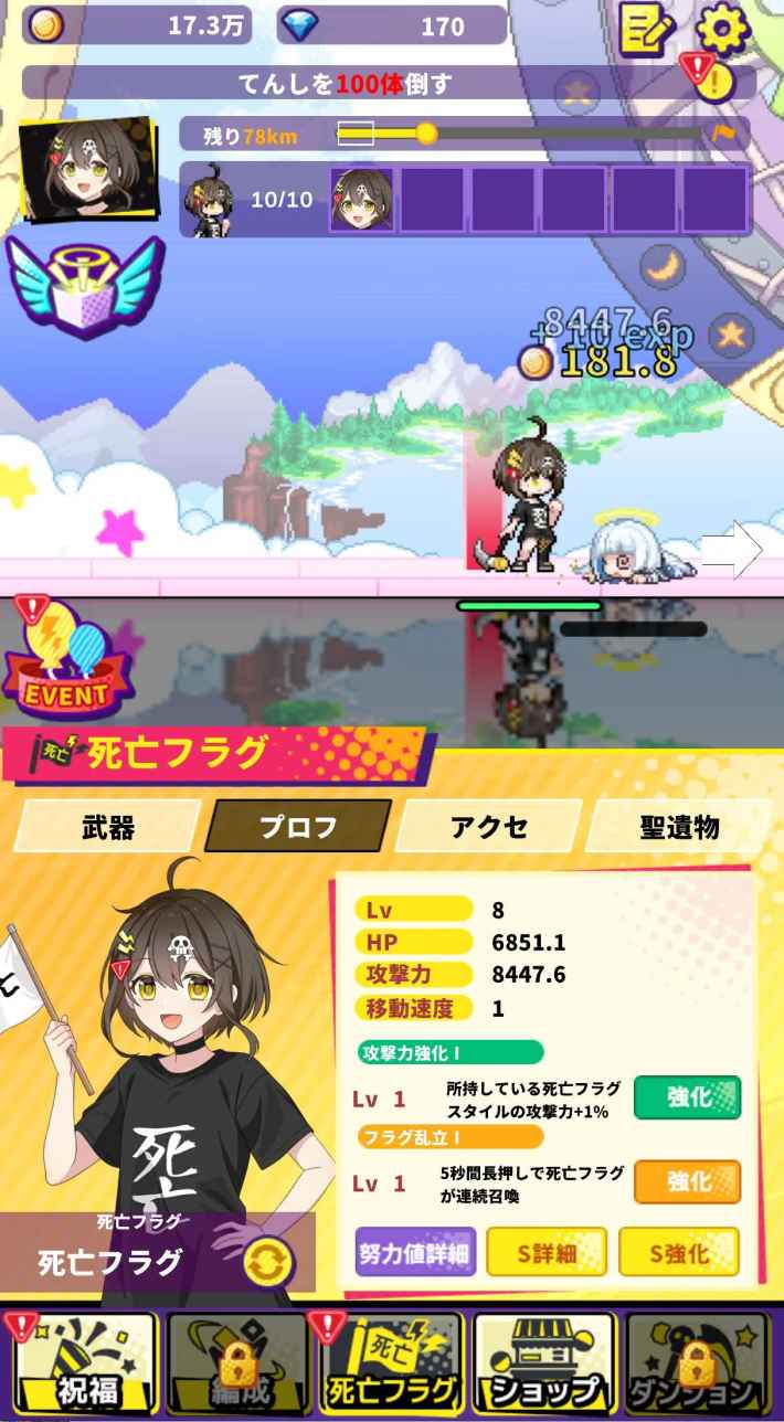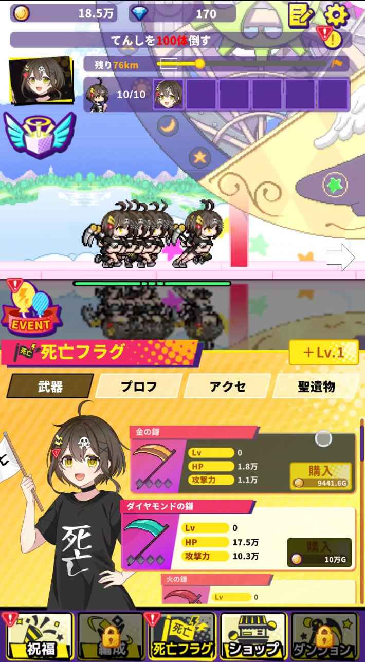 独自性は控え目だが、大多数の放置ゲームに見られるスタンダードな仕組みなので、ゲームの流れを把握するのは比較的容易と言えるだろう。