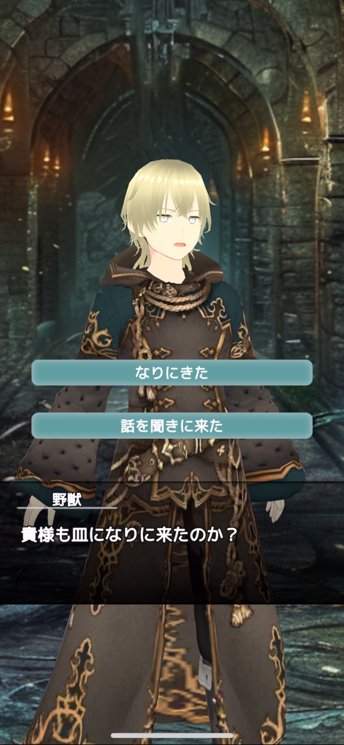 仲間入手後にボスを撃破するとこの世界の住人を食器に変えてしまった本人˝野獣˝のもとへ行けるようになる。筆者は当然、「会いに行く」を選択した。しかし、この野獣は全く体力が減らない負けイベントらしい。