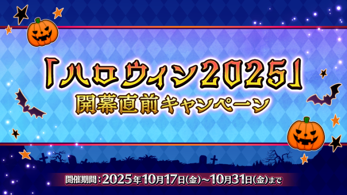 2025年10月17日(金)、FGO PROJECTはスマートフォン向けRPG『Fate/Grand Order』にて『ハロウィン 2025』開幕直前キャンペーンを実施した。
