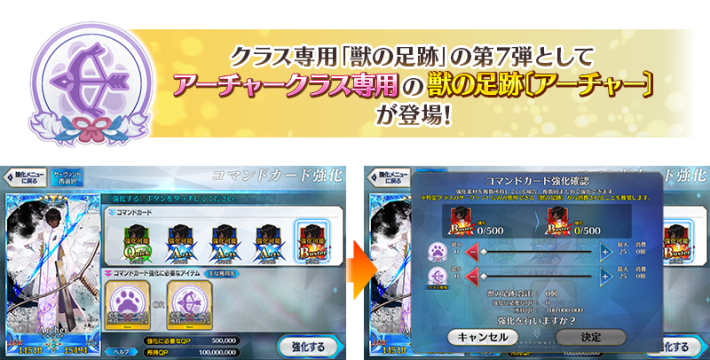 コマンドカードの強化に使用する「獣の足跡」にクラス専用のアイテムを追加いたします。