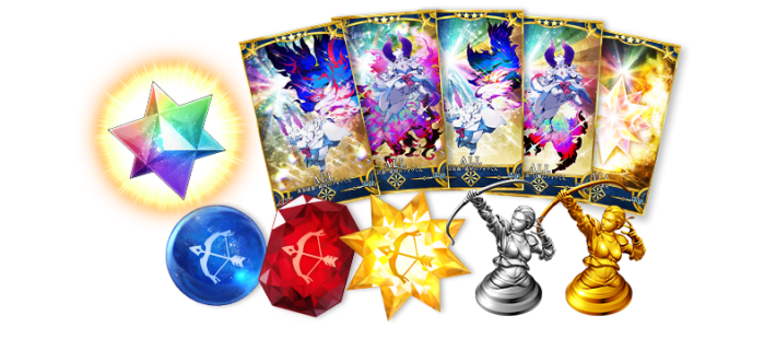 ミッションをクリアすることで「聖晶石」3 個、「英霊結晶・終局のフォウくん ALL★5(HP)」1 枚、「英霊結晶・原初のフォウくん ALL★5(ATK)」1枚、「英霊結晶・流星のフォウくん ALL★4(HP)」1枚、「英霊結晶・日輪のフォウくん ALL★4(ATK)」1枚、「叡智の業火 ALL★5(SSR)」20 枚、「アーチャーピース」15 個、「アーチャーモニュメント」9 個、「弓の輝石」15 個、「弓の魔石」9個、「弓の秘石」6個を獲得できます。