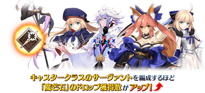 対象クエストで獲得できる「魔芒石」のドロップ獲得数は、パーティに編成したキャスタークラスのサーヴァント1騎ごとに1個増加します。