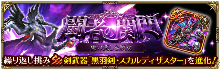 「闘者の関門-東の悪しき魔女- 特別クエストチケット[期間限定]」を使用することで、特別クエストに挑戦でき、専用進化素材「黒羽剣・スカルディザスター進化煌星」を追加で1,000個獲得できます。