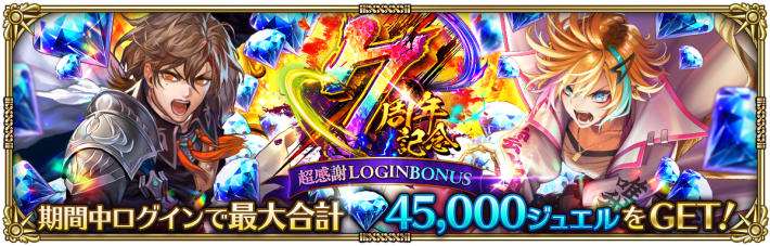 期間中、最大30日間ログインで合計45,000ジュエルをプレゼントいたします。
