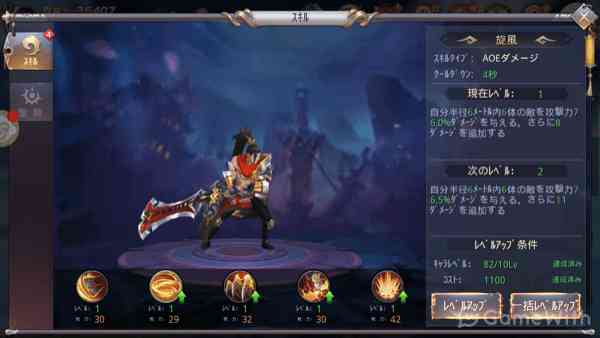 バトルの目玉はド派手なスキル。スキルはキャラクターのレベルに応じて最大4種類解放され、それぞれアイテム消費で強化することができる。