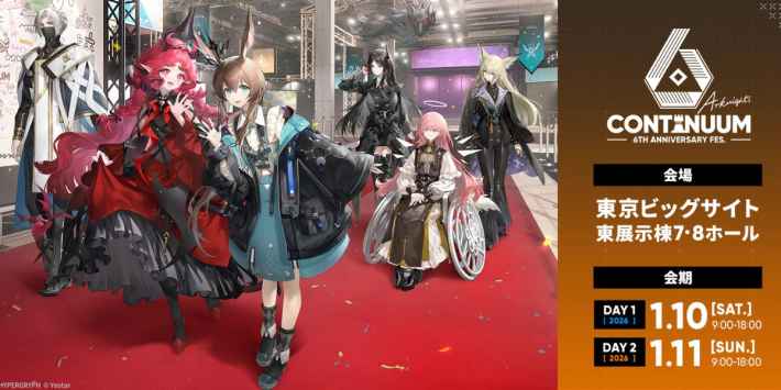 Yostarは、アプリゲーム『アークナイツ - 明日方舟 -』の6周年を記念したリアルイベントを2026年1月10日から11日に東京ビッグサイトで開催する。特設サイトも公開されており、入場チケットの1次抽選申し込みが開始されている。また、6周年記念グッズの一部事前通販も開始した。
