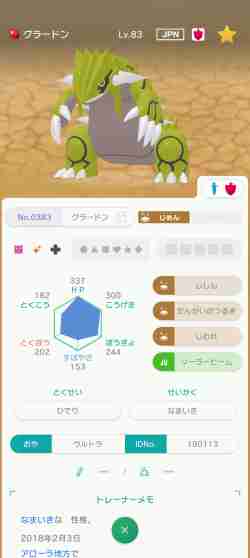 go産親名指定可能色パルキア、色カイオーガマスボJPN、色ディアルガマスボENG、アカツキガチグマゴジャボJPN
