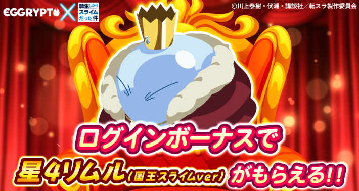 NFTゲーム「EGGRYPTO(エグリプト)」、アニメ「転生したらスライムだった件」とのコラボイベントが本日より開催!