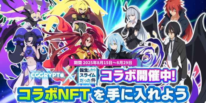 2025年8月15日(金)より、KyuzanがGameWithと共同開発した『EGGRYPTO(エグリプト)』が、アニメ「転生したらスライムだった件」とのコラボイベントを実施した。