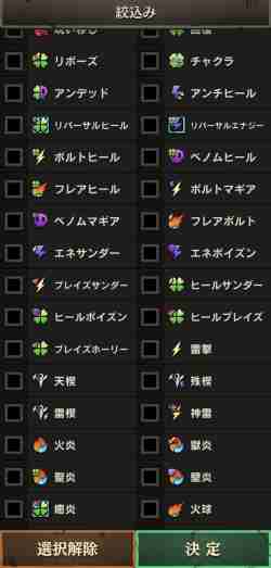 絞り込み機能とかダメ種で分ければいいのに毒だけでベノムマギア/エネポイズンとか、フレアボルト/エネサンダーとか、さもいっぱいスキルありますよ感だけ出してただ見辛いだけっていう。