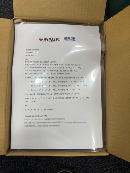 なんと6月13日(金)発売の最新セット『マジック:ザ・ギャザリング――FINAL FANTASY』から、プレイブースターとコレクターブースター、そしてスターターキットを頂きました!ありがとうございます!!!
