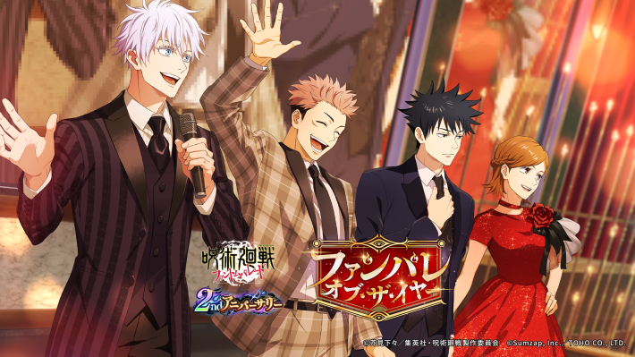株式会社サムザップ(本社:東京都渋谷区、代表取締役:礎 考宏、以下、サムザップ)は、東宝株式会社(本社:東京都千代田区、代表取締役社長:松岡宏泰)が企画・制作し、サムザップが企画・制作・開発・運営を行う、スマートフォンゲーム『呪術廻戦 ファントムパレード』(以下、『ファンパレ』)がサービス開始2周年を記念して展開する新バージョンで登場するキャラクターおよびゲーム内イベントの詳細やTVCMを含むプロモーション企画、さらに2周年以降の展開情報を解禁いたしました。