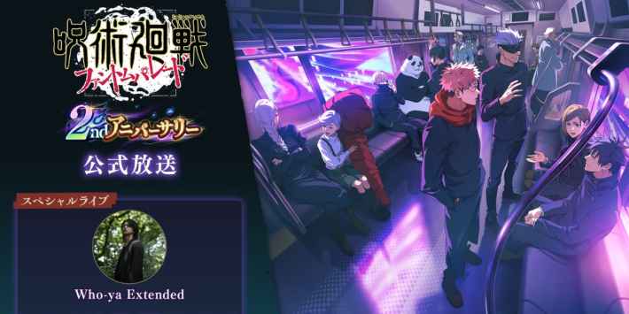 本放送は3部制で、1部ではデータで振り返る『ファンパレ』として、祓った呪霊の数や全キャラクター・廻想残滓をコンプリートしている人の数など、過去の放送でおなじみになったコーナーを実施したり、プレイヤーの皆様がキャラクターごとの名シーンを選ぶ投票企画「ファンパレ・オブ・ザ・イヤー」の結果を発表。続いて、2部では『ファンパレ』情報局として、2周年を記念したイベント、さらにその先のロードマップを解禁。そして3部では、Who-ya Extended スペシャルライブとして、オリジナルストーリー呪獄島編の主題歌「Chained Chase」を初披露したほかコメント動画も公開いたしました。アーカイブ配信は、2026年2月16日(月)まで公開しております。
