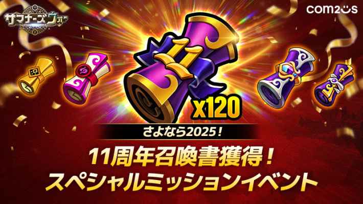 2025年12月1日(月)、Com2uSはスマートフォンゲーム『サマナーズウォー : Sky Arena』において、2026年1月4日まで3つの「さよなら2025!」イベントを開催した。