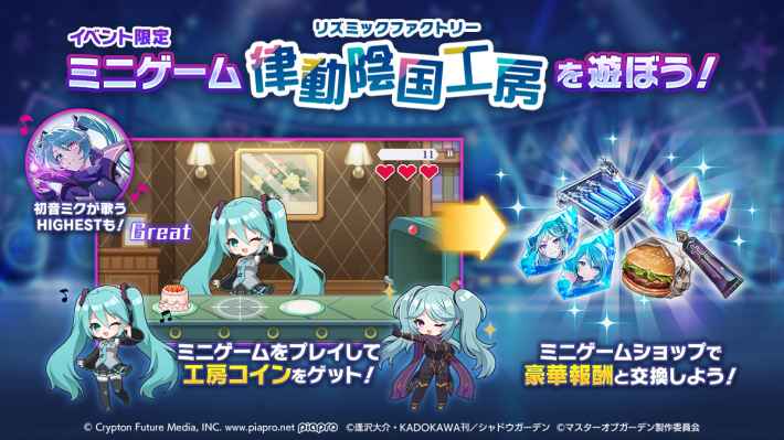 『初音ミク』が登場する期間限定コラボイベント「新たな旋律を生みたくてfeat. 初音ミク」を開催します。本イベントは「カゲマス」が舞台のコラボイベントとなっています。