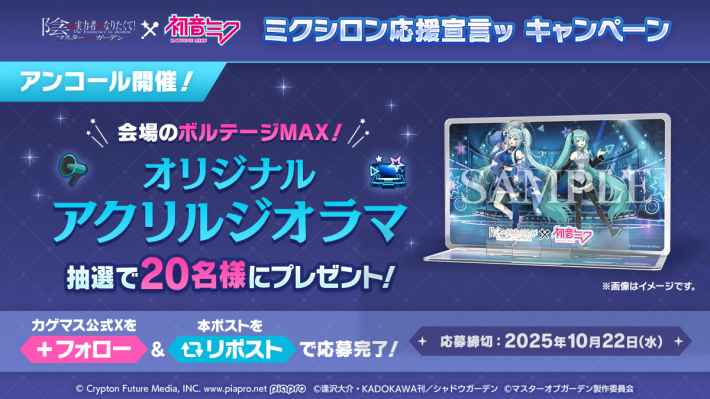 「カゲマス」公式Xでは「ミクシロン応援宣言ッ キャンペーン」を実施中!