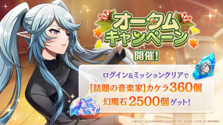 「カゲマス」では9月25日(木)よりオータムキャンペーンを開催しています。