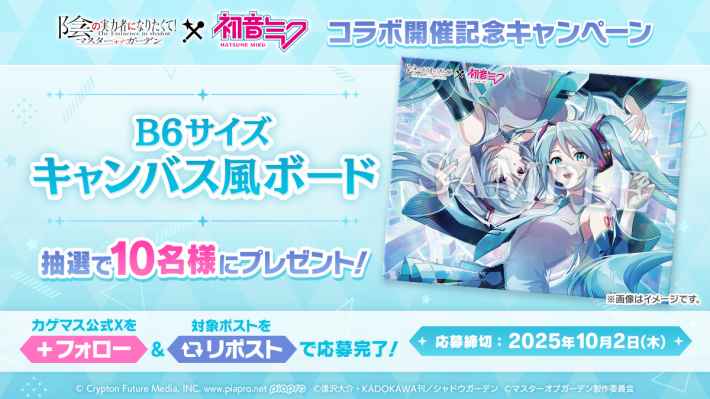 『陰の実力者になりたくて!マスターオブガーデン』×バーチャルシンガー『初音ミク』コラボイベント開催!オリジナルグッズが手に入る豪華キャンペーンも開催!