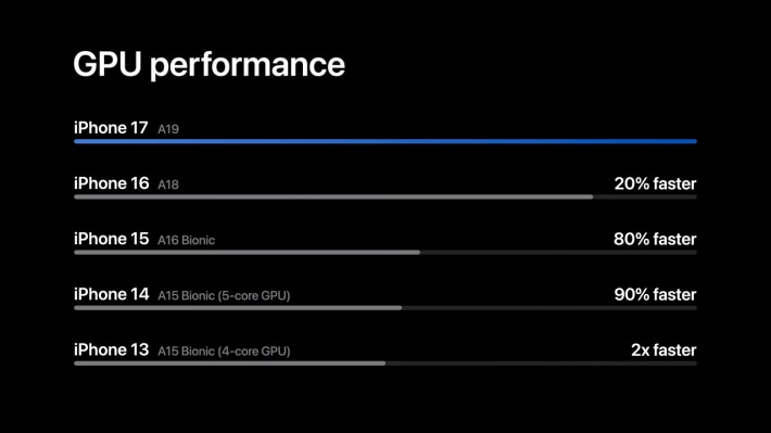 ※Apple公式YouTube より|iPhone17の処理性能の違い