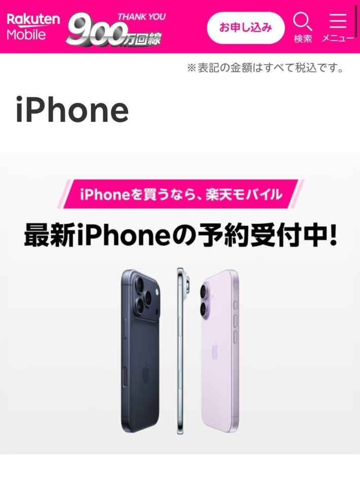 - 楽天モバイル公式サイトのiPhone一覧ページにアクセス