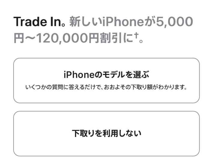 Apple公式ではiPhoneの下取りでお得に購入できます。モデルによって価格が異なるので、公式HP上でお手持ちのiPhoneのシリアル番号を入力してみましょう。いくら割引になるのかがわかります。