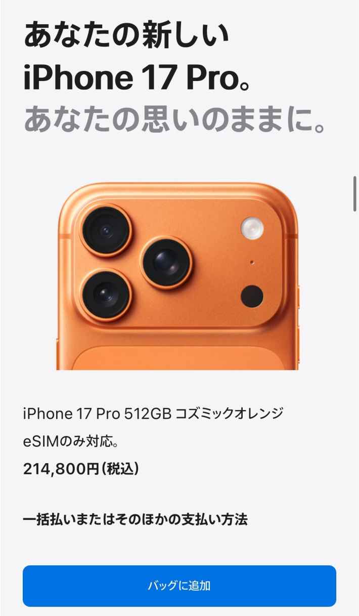 最後に価格を確認し、購入手続きへ進みましょう。iPhone17シリーズなどの最新モデルについては、予約開始タイミング・発売開始タイミングで出てくる画面が若干変更される場合もあります。
