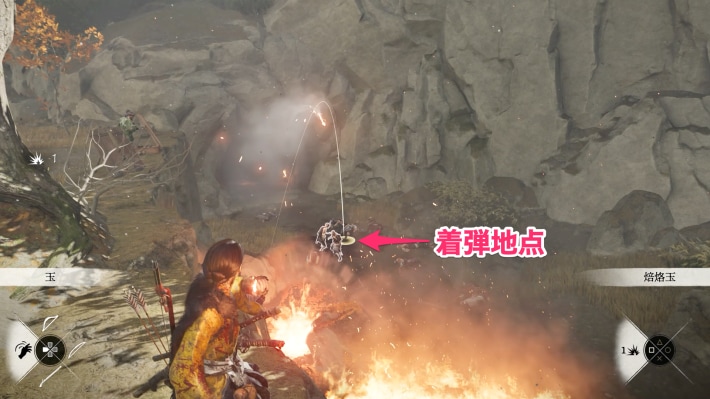 ゴーストオブヨウテイの玉は、敵の周囲に投げて使う飛道具です。玉には「焙烙玉」や「目潰し玉」といった種類があり、それぞれ切り替えて範囲ダメージや目潰し状態を狙えます。
