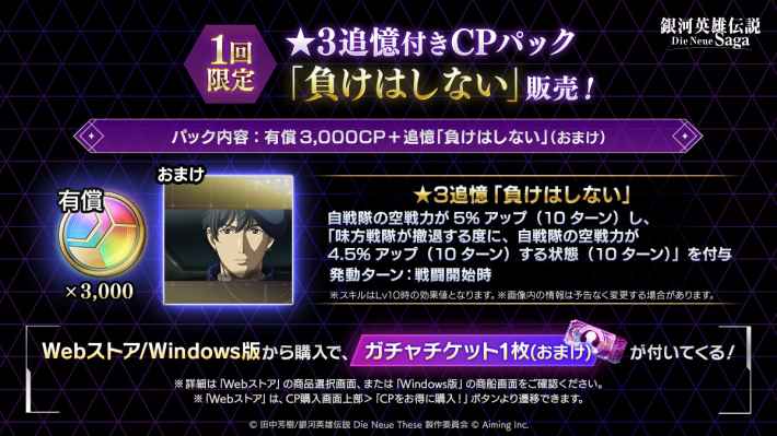 入手アイテム | 追憶「負けはしない」 ・3,000有償CP |