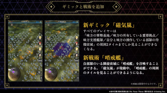 シーズン6のアップデートで、会戦に新ギミックと新戦術が追加されました。新ギミックの「磁気嵐」は、自分と味方の操作している部隊の待機宙域の周囲2タイルまでしか見れなくなります。