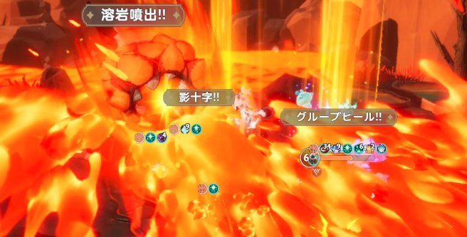 長時間の範囲攻撃で全キャラのHPを継続的に削ります。通常の回復スキルでは継続ダメージに対して回復が追い付かないため、味方のHPが減少し始めたタイミングで「神聖治療」を用いてダメージを受けつつ回復を行いましょう。