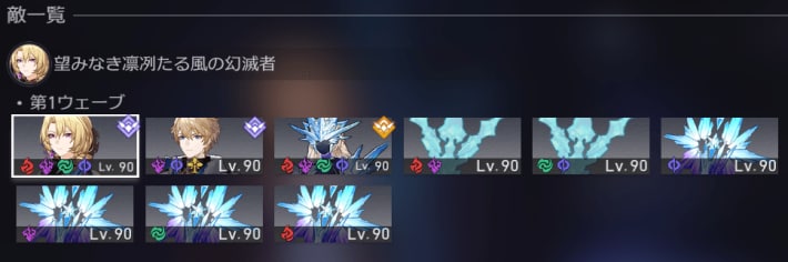 末日の幻影には4つの難易度が用意されており、すべての難易度で出現するボスは共通となっている。そのため、4つの難易度全てを同じ編成でクリアすることも可能だ。