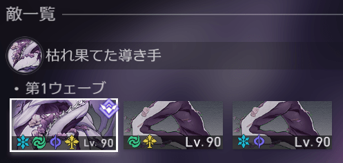 朽ち株と枯れ木 (難易度Ⅰ) | この戦闘中、味方のHPは1を下回らない。残りHPを超過した分のダメージは「負荷HP」に変換される。「負荷HP」状態の味方は、与ダメージと弱点撃破効率が大幅にダウンする。 |