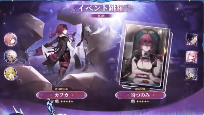 新星5キャラとしてセイレンスが実装されます。また、3.4の予告番組で予告された通り、カフカが復刻されます。