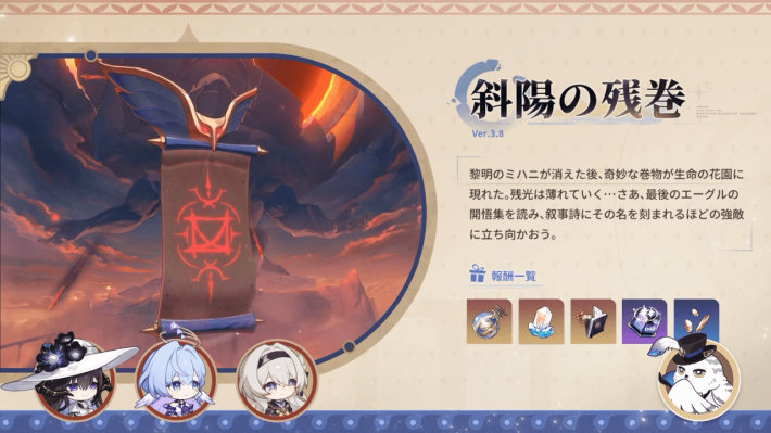 新星5キャラとしてダリアが実装されます。Ver.3.8のガチャは第1期から第3期に分けられ、第一期はホタルが復刻されます。