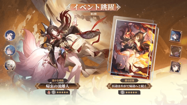 第2期では帰忘の流離人と霊砂が復刻されます。いずれもホタル編成と相性のいいキャラクターです。