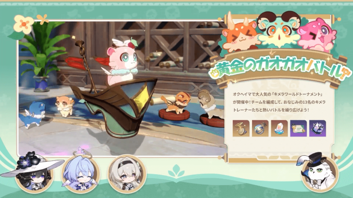 キメラたちと一緒にバトルをするイベントです。各黄金裔をパートナーに任命でき、黄金裔は各キャラに応じて特殊なキメラを連れています。