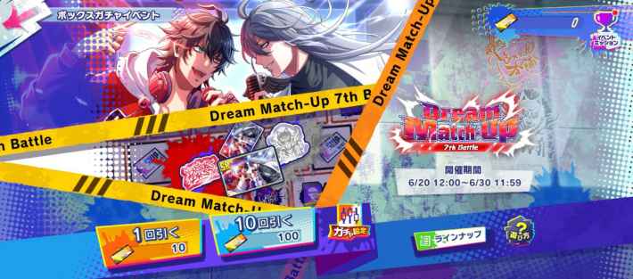ヒプドリのイベント「Dream Match-Up 7th Battle」の攻略です。イベントクエストのミッションや攻略情報、ボックスガチャの報酬などについて掲載。ヒプドリイベントに参加する際にお役立て下さい。