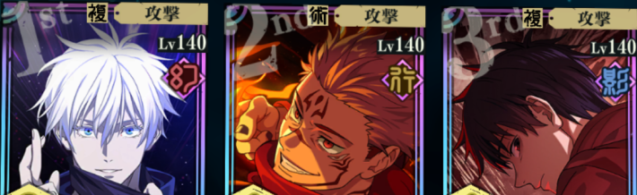 五条悟 | 複合 / 攻撃 ・高火力の必殺は周回やボスに強力 ・無下限呪術をスキルで使用 ・高倍率な自己バフが可能 | ||