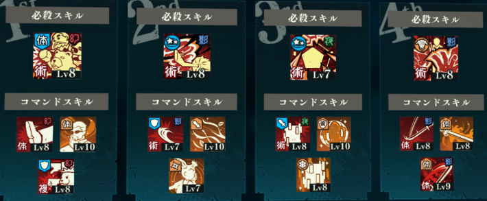 夢幻廻楼79階攻略パーティーは、宿儺の強化したスキル3と必殺スキルを複数回使い倒しきる編成。2回目の必殺スキルで、敵2体をブレイクまで持っていくことで被ダメを減らし味方の離脱を防ぐことができる。