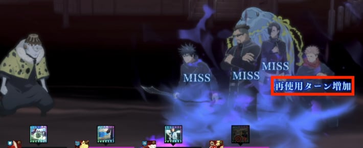 SPバトル設定には「漏瑚が必殺使用後、残滓の再使用ターン数+3」があり、使用前残滓はさらに使えるターンが伸びてしまう。残滓が使える状態なら再使用ターンは増えないので、漏瑚の必殺が近い場合は、あえて残滓を温存しておく戦術も有効だ。
