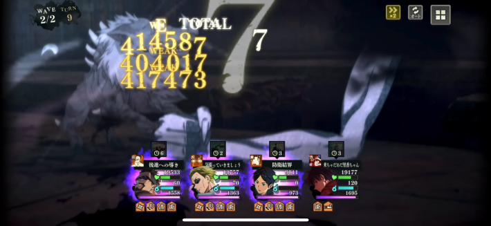 必殺スキル使用後(折本里香状態)は、まずスキル2を使い強力な自己バフを発動しよう。消費呪力は70と大きいが、必殺スキル使用時に50回復と毎ターン開始時に10回復するので、呪力枯渇時でも発動が可能だ。