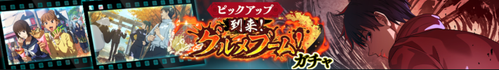 到来!グルメブーム!イベント開催記念に、新SSR乙骨が新登場するピックアップガチャが開催。ピックアップ対象が欲しい場合は優先的に引こう。
