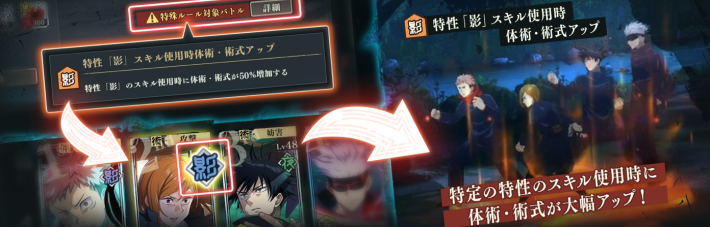 今回の幻境戦VS夏油は「影」属性が推奨特性。幻境戦は戦闘中常にステージ効果が発揮する。スタータスアップや火力アップなどのステージ効果をうまく利用して戦闘に挑もう。