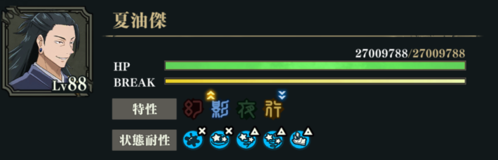 夏油傑 | 【役割】:攻撃/サポート 【おすすめポイント】 ・高火力の全体必殺 ・デバフの倍率が高い ・推奨特性キャラ |