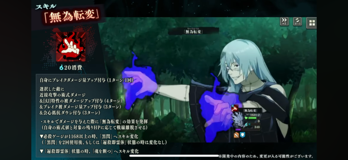 | 「無為転変」 スキル3 消費呪力:20 | (幻)被ダメアップ付与(4T) ブレイク被ダメアップ付与(3T) 会心抵抗ダウン(3T) |
