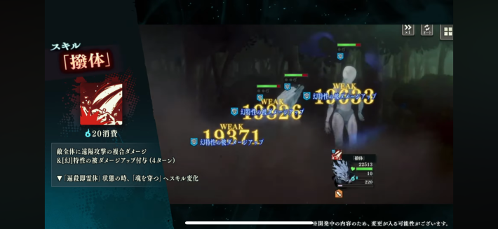| 「撥体」 スキル2 消費呪力:20 | (幻)被ダメアップ付与(4T) ※全体攻撃 |